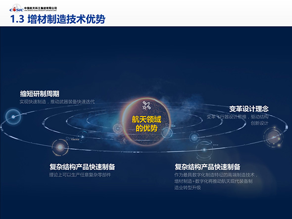 —  PPT整體采用藍色作為主色調,藍色具有沉穩的色彩性格,給人可靠的感覺,且與天空的顏色相同,符合PPT的航天主題。封面的分割式圖文編排方式給人穩定的視覺感受,無襯線字體與書法字體的搭配又使版面不至于死氣沉沉