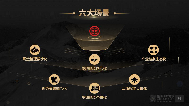 5. 個性化:專業平面設計師量身制作PPT,美觀、大方、創新、適合,帶觀眾進入美妙的視覺意境,并準確體現企業文化內涵。