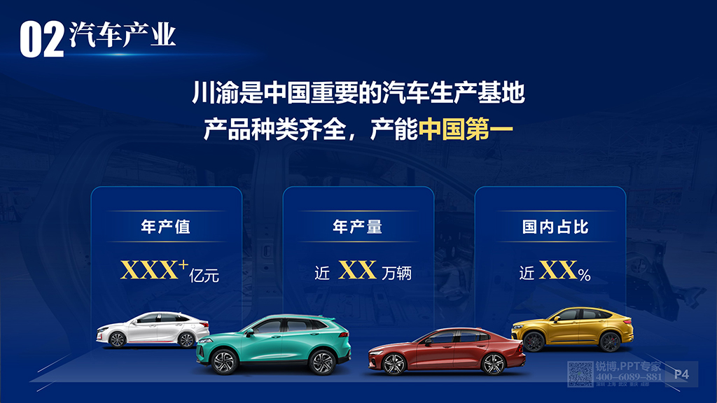 該設計使用藍金色調,把相關數據及圖文融入到設計中,藍金色調時尚大氣且不突兀,讓整個ppt營造出時尚、高貴、嚴謹的視覺觀感,沒有任何多余的花哨裝飾,也讓ppt增添了大氣感。