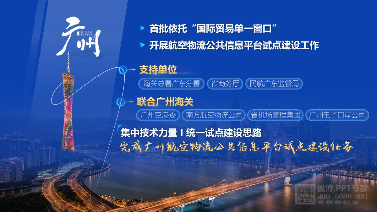 設計風格現代,融入廣州地標與航空元素,直觀展現廣州航空物流公共信息平臺建設情況,增強地域與行業屬性。