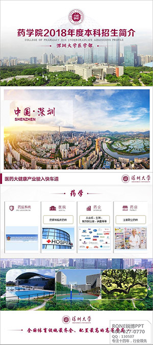 深圳大學(xué) 醫(yī)學(xué)院的招生宣傳PPT 需要展示校園風(fēng)貌,體現(xiàn)文化底蘊(yùn),在時(shí)代中體現(xiàn)前瞻性。這些我們充分的體會(huì)考慮到,收集相關(guān)資料,查閱有關(guān)書籍報(bào)道。根據(jù)其自身特點(diǎn),配色上嚴(yán)謹(jǐn)而不失朝氣,大氣統(tǒng)一,無不體現(xiàn)校園風(fēng)采。