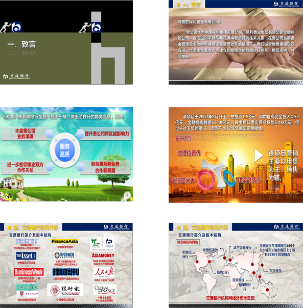 案例介紹: PPT采用立體生動效果,跟該集團的經營業務和企業文化比較吻合;同時,襯以時尚藍,避免畫面過于沉悶和保守;PPT的導航系統盡量做出創意,同時保證PPT的邏輯清晰和嚴謹;動畫以簡約、順暢和創意為主,不雜亂、不瑣碎。本PPT與隨后的視頻宣傳片相互補充,有助于活動目標的順利實施。