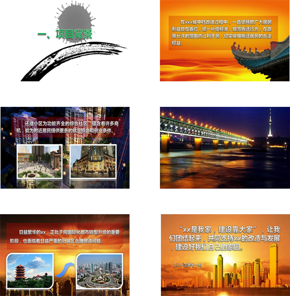 本PPT畫(huà)面上具有科技感和時(shí)尚元素,很好地體現(xiàn)了項(xiàng)目地產(chǎn)公司的行業(yè)屬性;整體結(jié)構(gòu)上,采用了五個(gè)簡(jiǎn)潔的文字進(jìn)行描述,雖然是說(shuō)明式結(jié)構(gòu),但充滿(mǎn)創(chuàng)意;在質(zhì)感上采用現(xiàn)代氣息的光影效果,看似簡(jiǎn)單,但細(xì)節(jié)設(shè)計(jì)到位,華麗而不失大氣,現(xiàn)代而不失穩(wěn)重;在動(dòng)畫(huà)制作上有較大突破,借鑒電子畫(huà)冊(cè)、flash、3D視頻的動(dòng)畫(huà)效果,但保留了PPT動(dòng)畫(huà)的特色——邏輯清晰、動(dòng)作連貫、自動(dòng)手動(dòng)任意切換,創(chuàng)意很有商務(wù)氣息。