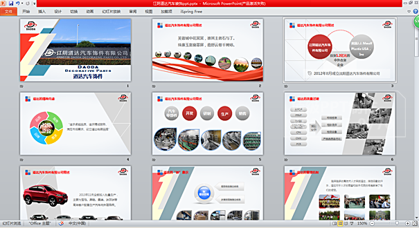 銳博PPT設(shè)計大氣滂沱思維創(chuàng)新理念先進(jìn),道達(dá)汽車飾件公司介紹PPT設(shè)計高度定制!