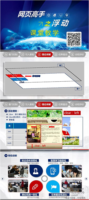 此版以紅色和藍(lán)色的冷暖搭配更讓觀看者眼前一亮的觀看體驗(yàn),背景呈現(xiàn)的灰色調(diào)更突出了重點(diǎn)文字內(nèi)容,再加上適合的圖片渲染更體現(xiàn)了該課堂的特色和創(chuàng)新。