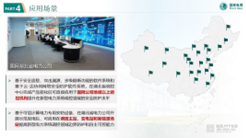 利用電網(wǎng)標(biāo)志的顏色為整體ppt的主色調(diào),畫面明亮干凈,邏輯清晰,底圖烘托氣氛,