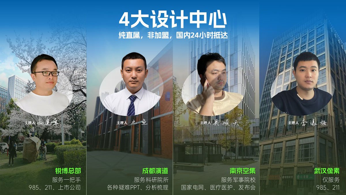 銳博PPT是面向大中華區,集PPT策劃、設計、制作、發布為一體的PPT制作公司,自擁有近三十名設計師,專門為政府、事業單位、企業、個人提供高級別路