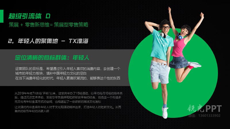 簡約時尚的設(shè)計風格,深色底搭配綠色,運用文字加大對比,圖形穿插等手法締造了簡約的
