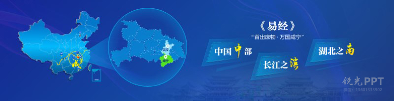 PPT設計,書法字體和咸寧風景圖的搭配使用,凸顯了咸寧人杰地靈,精確地圖形繪制,更好地展現了咸寧的區位優勢。