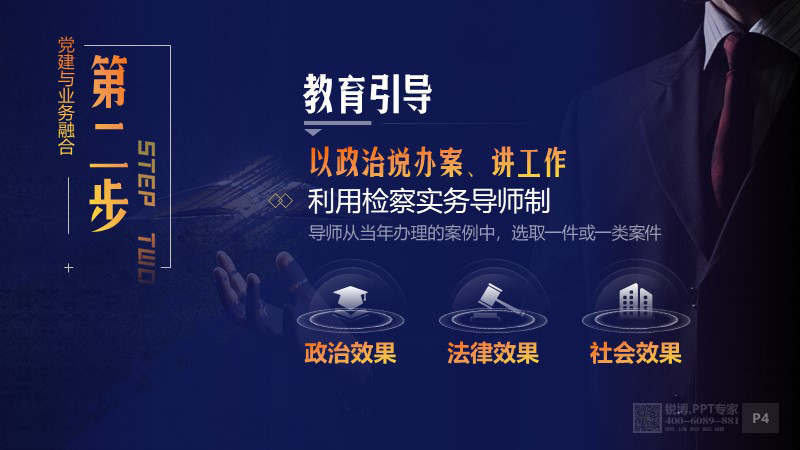 場景化圖片為輔突出檢察院莊嚴肅穆的感覺,運用文字顏色的對比和大小對比來突出核心內容,
