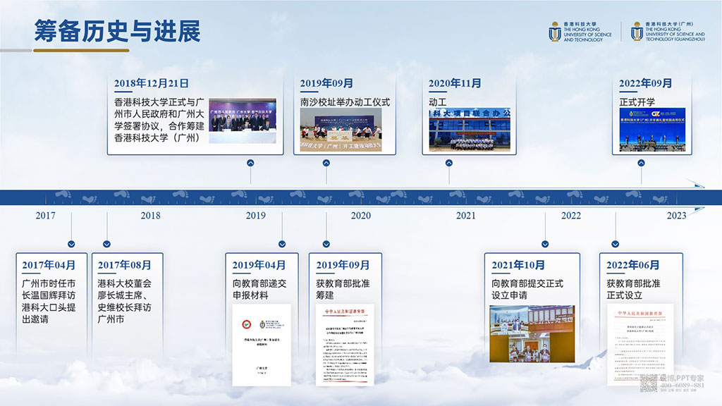 PPT整體采用藍色作為主色調,藍色代表科技感和神秘感,與香港科技大學的行業特色相呼應,傳遞出學校的創新精神和學術深度,